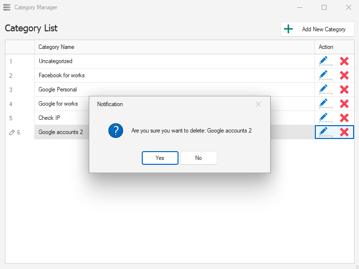 {% hint style="info" %} <mark style="color:blue;">Confirm the category name you want to delete then click</mark> **Yes**